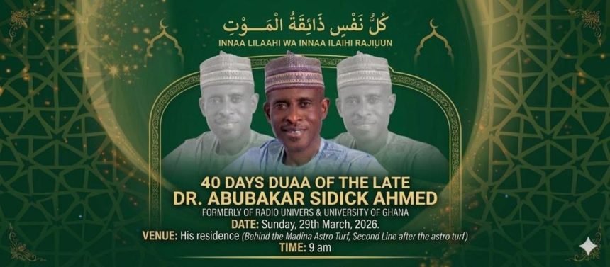 The 40 Days Duaa for the late former Station Manager of Radio Univers, Dr. Abubakari Sidick Ahmed, is scheduled for Saturday, March 29, 2026, at his residence in Madina at 9:00 a.m.