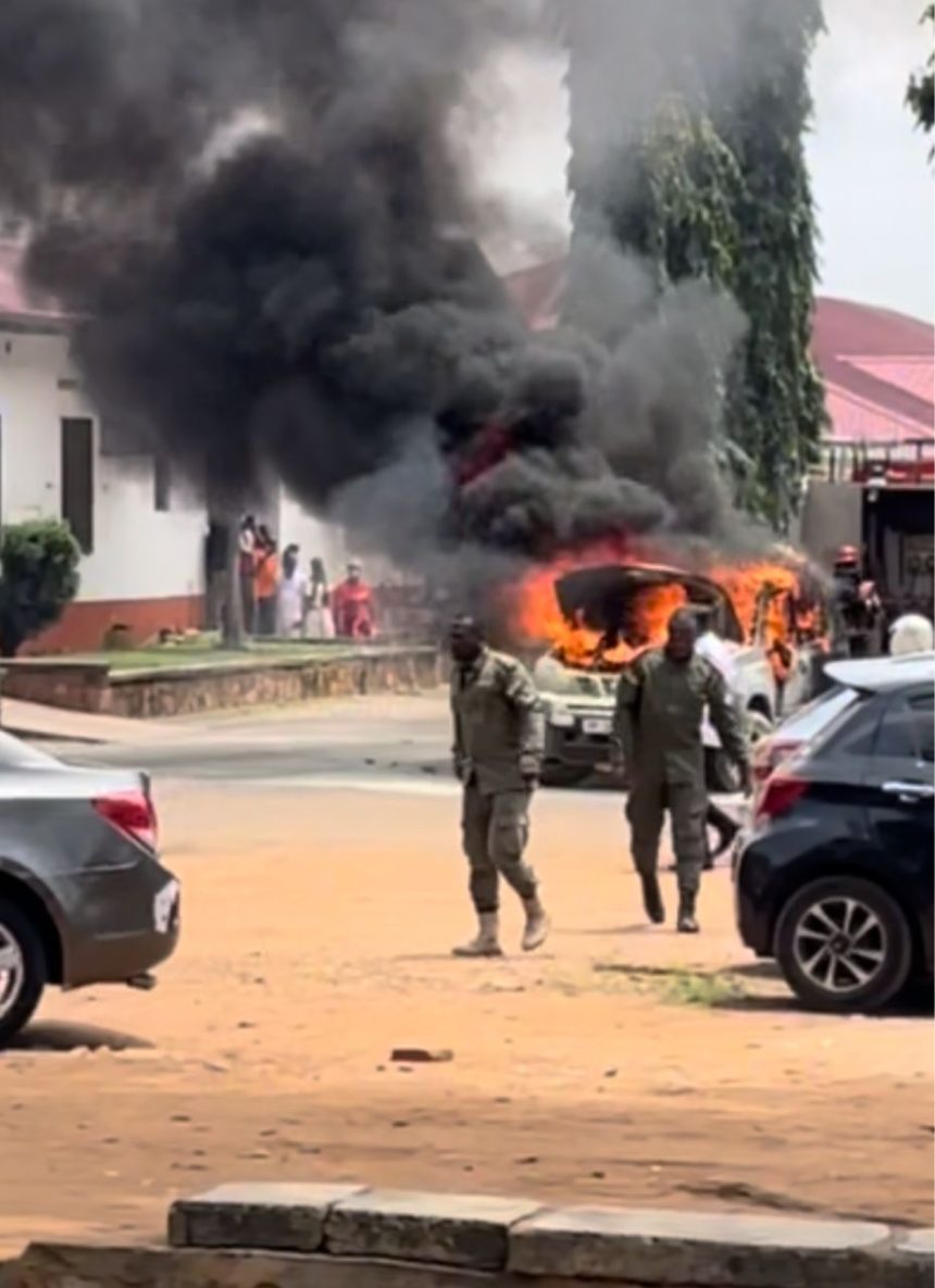 According to the car owner, he had just started the vehicle after leaving the hospital with his wife when he noticed unusual behavior from the engine. Moments later, he observed a trail of petrol leaking, which quickly ignited into flames. He added that the car had just been serviced the previous day, September 29, 2025.