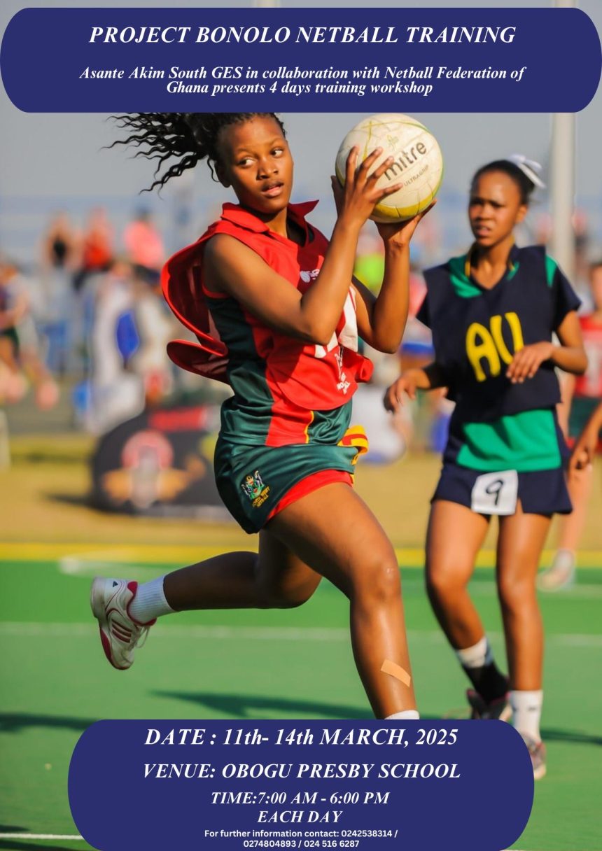 In a bid to promote sports development at the grassroots level, the Netball Federation of Ghana (NFG), in collaboration with the Asante Akim South Ghana Education Service (GES), is set to host a four-day netball training workshop under Project Bonolo Netball Training.